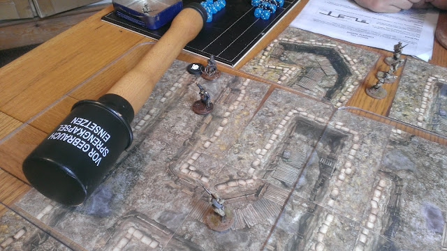 Brilliant, Colonel - that looks a really great set up there. Very flexible and handsome indeed. I like the micro-scale setting of the game - I rember from the reading I did on trench raids that some could be very small, intimate affairs indeed, and ideally suited for your rules. Looking forward very much to seeing the version for public consumption, as I shall be giving these a try. Splendid stuff!