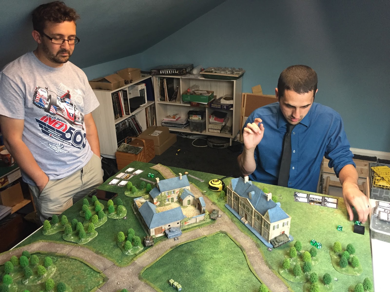 | An impeccably-dressed Ollie picks up the dice to fire that fearsome 88 - largely avoiding the Panzer IV, we focus all our efforts on bringing down the Tiger. |
